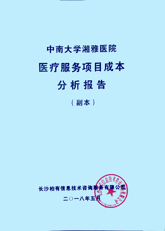 受中南大学湘雅医院委托,核算了该医院2017年开展的2697个常规医疗项目定价成本,据此核算了该院按病种收费的100个病种成本,分析了存在的问题,得到湘雅医院的认同和肯定。