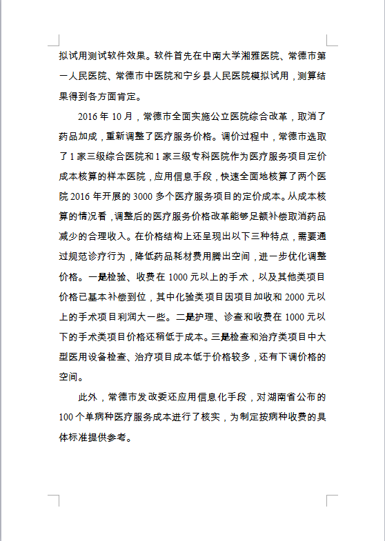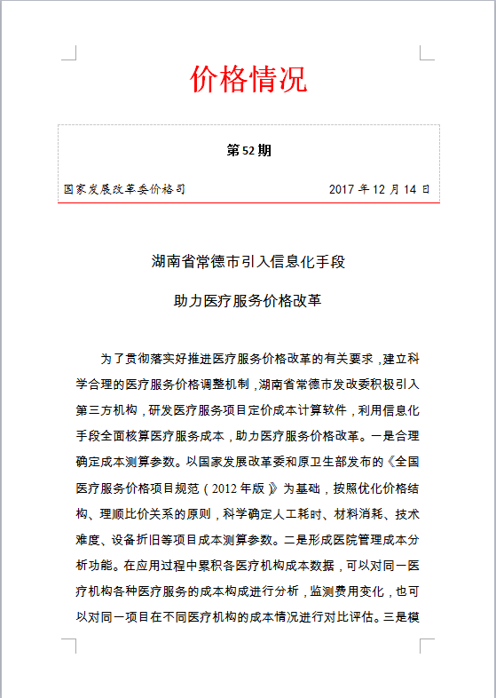 国家发改委价格司对医疗项目成本软件的评价